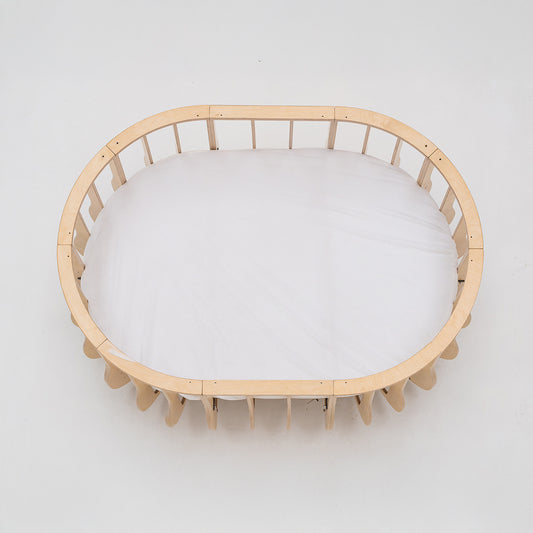The Round Mattress compatible with mini pod and large pod is a set of two semi-rounded mattresses forming a round-shaped mattress. Crafted from high-quality natural super soft foam, it provides a breathable and comfortable sleep environment. Designed for your child’s safety and comfort, it promotes airflow to prevent overheating and is hypoallergenic for sensitive skin.